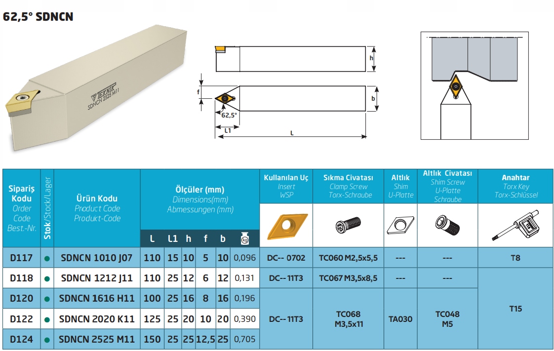 НОЖ СКЛАДНОЙ ПОВОРОТНЫЙ SDNCN 2525 M11 ДЛЯ ПЛАСТИНЫ DCMT 11T3.. D124