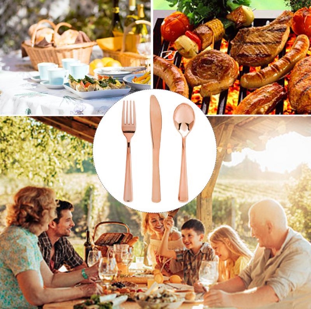 Одноразовые ножи и столовые приборы цвета РОЗОВОЕ ЗОЛОТО