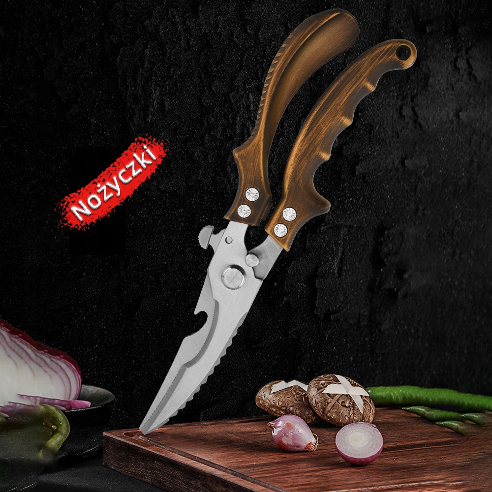 Многофункциональные ножницы из нержавеющей стали. Эти ножницы настолько острые, что их можно использовать для резки куриных костей, рыбы и многого другого.