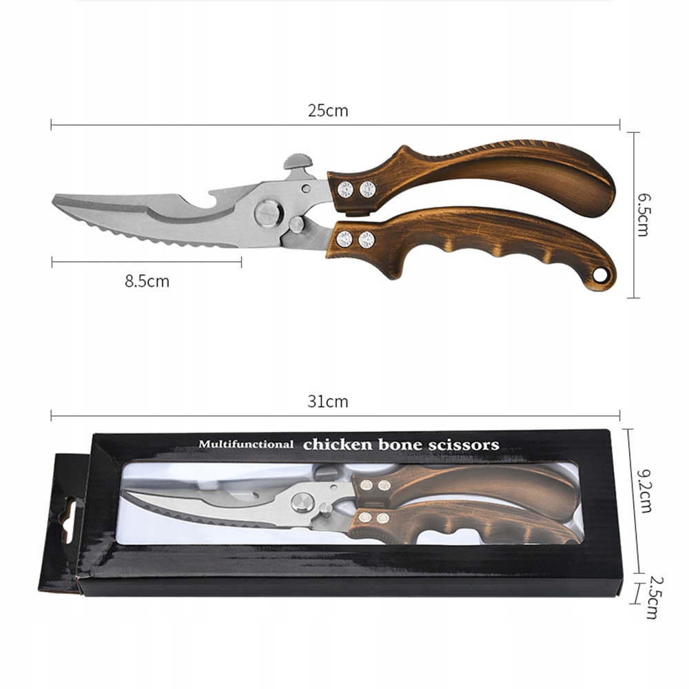 Они выполняют несколько функций, помимо резки куриных костей, им также можно соскрести рыбную чешую, разрезать куриные и утиные когти и т. д. А также его можно использовать в качестве открывалки для бутылок.