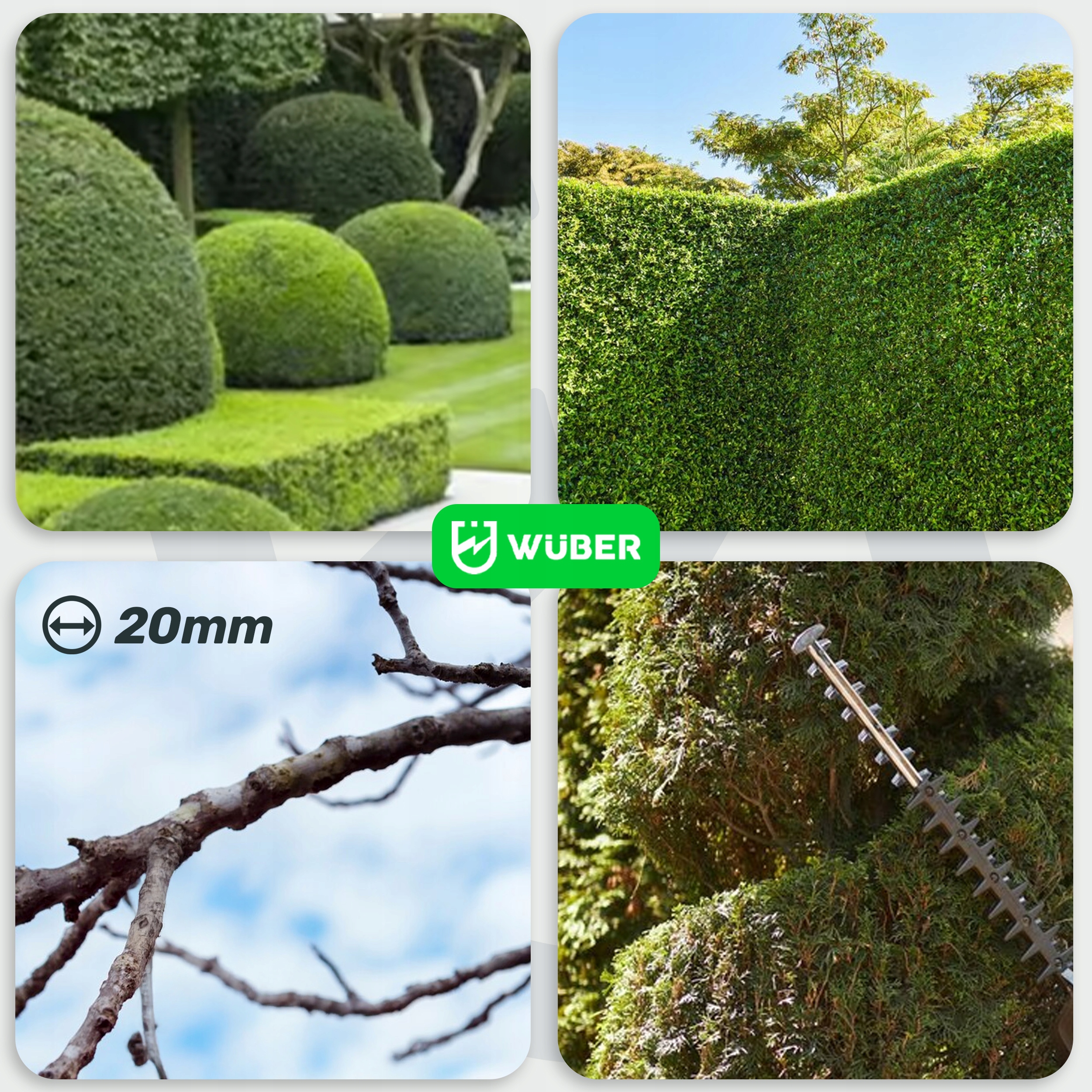 - ✅ Режущие ветви до 20 мм - идеально подходит для резки здесь, боквуд, лигустр или других популярных кустарников.
