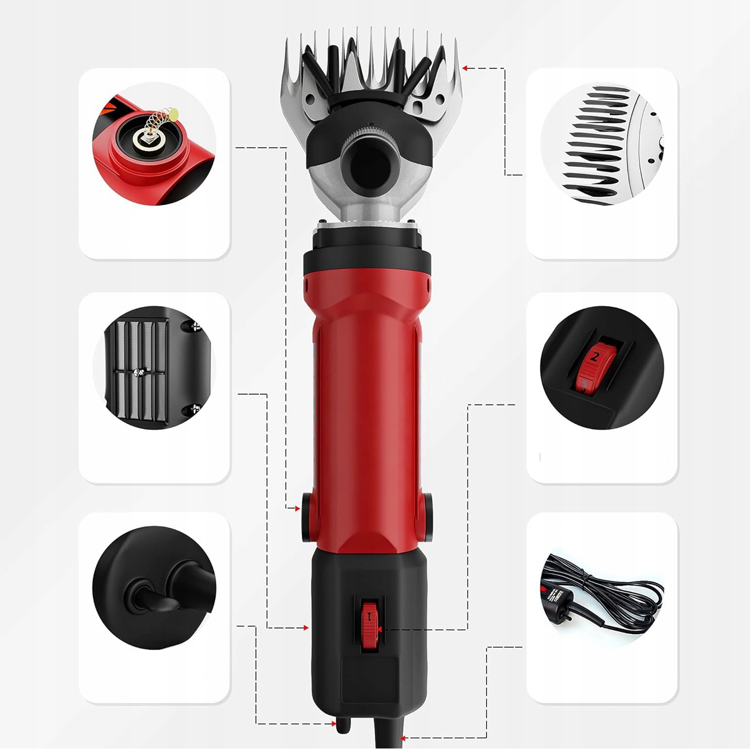 - 🐑 【Постоянные ножницы для крупного рогатого скота】: благодаря долговечному двигателю, полностью изготовленному из ножниц медных овец, сильны и долговечны. Эти электрические ножницы вращаются со скоростью до 2400 об / мин, благодаря которой сокращение легче и более эффективно.