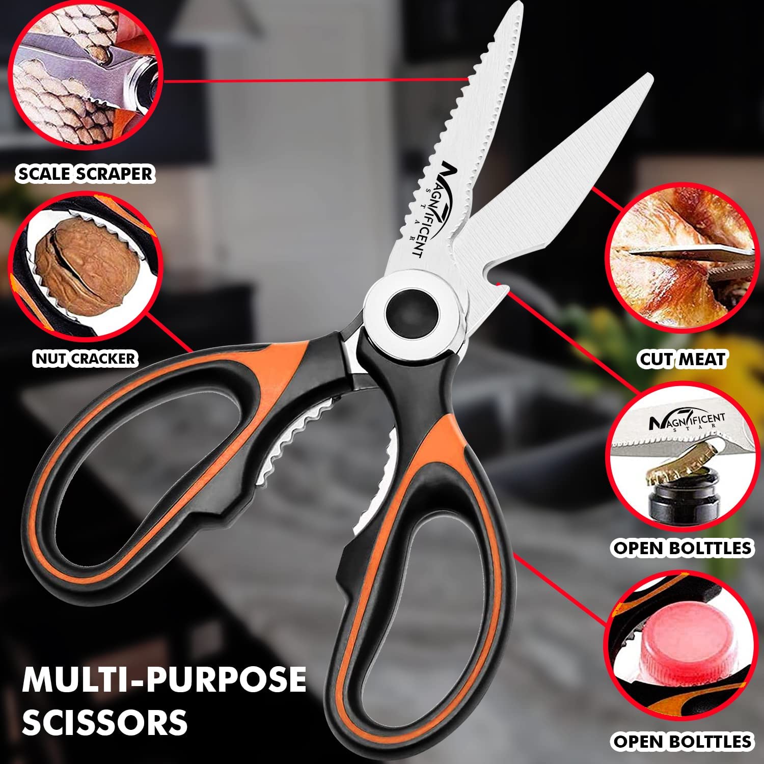 Великолепные кухонные ножницы, сверхмощные ножницы для кухни с защитным чехлом и дополнительным подарком, мягкой ручкой и многофункциональными универсальными ножницами, ножницами для резки мяса, птицы и трав, открывалкой для банок бутылок.