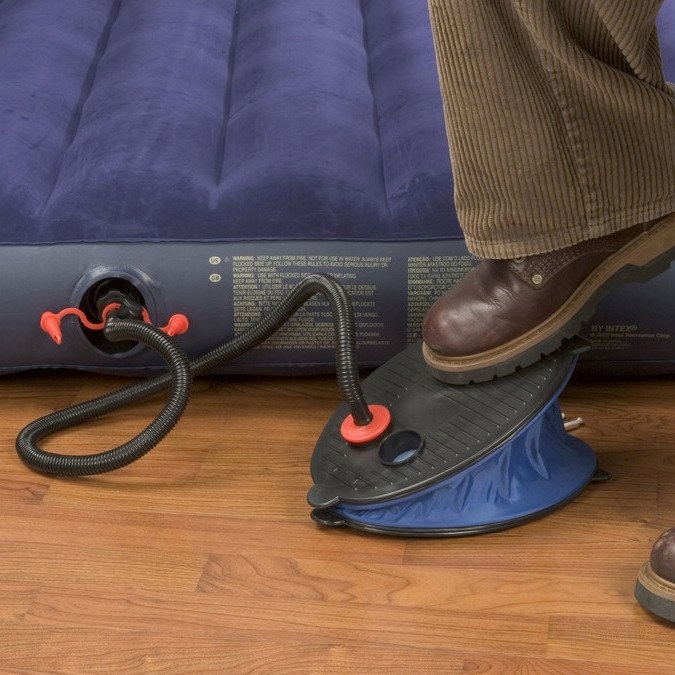 Ножной насос Intex предназначен для всех надувных изделий – от мячей до матрасов. Насос имеет функцию накачивания и откачивания воздуха, нужно лишь изменить направление потока воздуха. Благодаря длинному и гибкому кабелю сцеживание не составит труда.