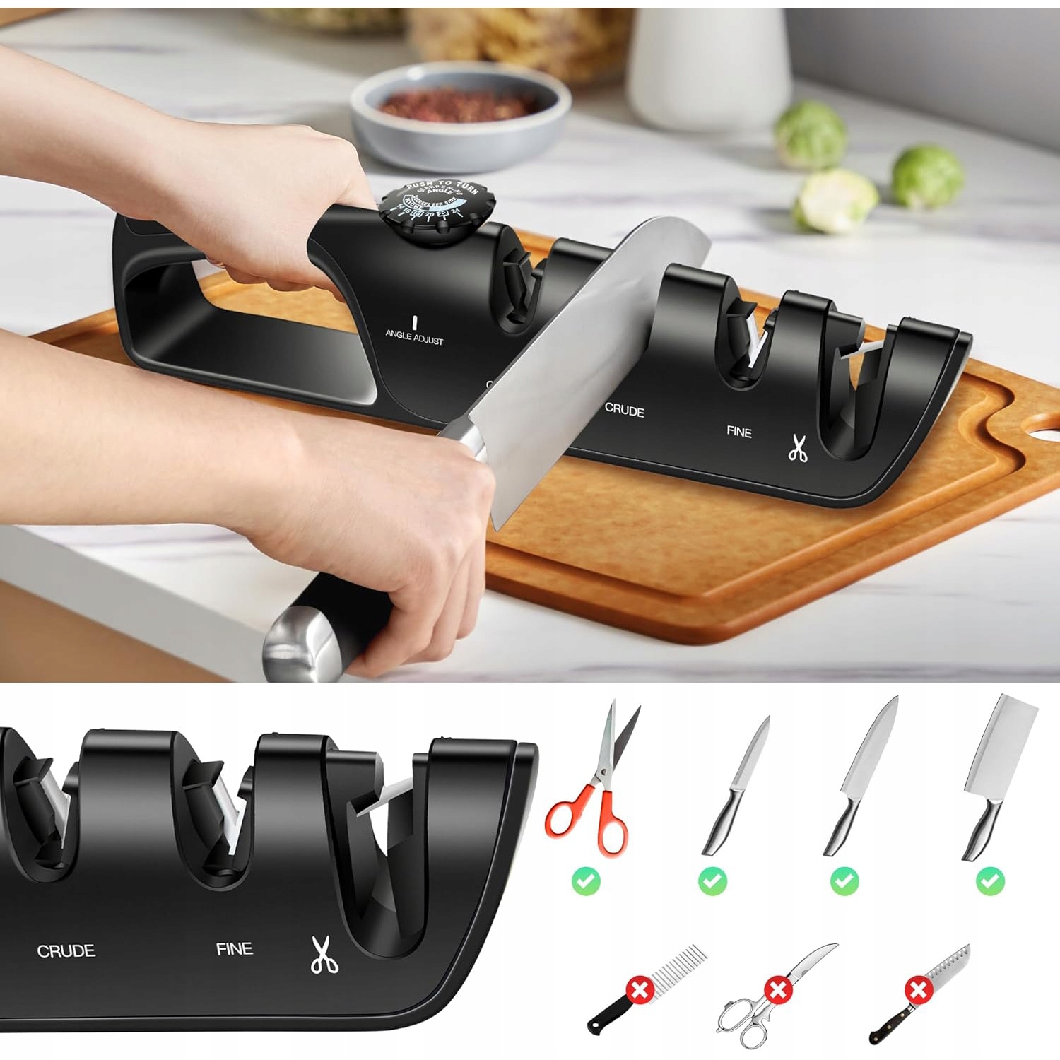 ✅ 【Точность в ваших руках】: Наша профессиональная ручная ручка для кухонных ножей была разработана для перфекционистов. Благодаря регулируемому диапазону угла заточки от 14 до 24 градусов, вы имеете полный контроль над процессом заточки. Независимо от того, являетесь ли вы опытным шеф -поваром или любителем, ищущим профессиональные результаты, вы можете легко получить идеальную резкость своего ножа.