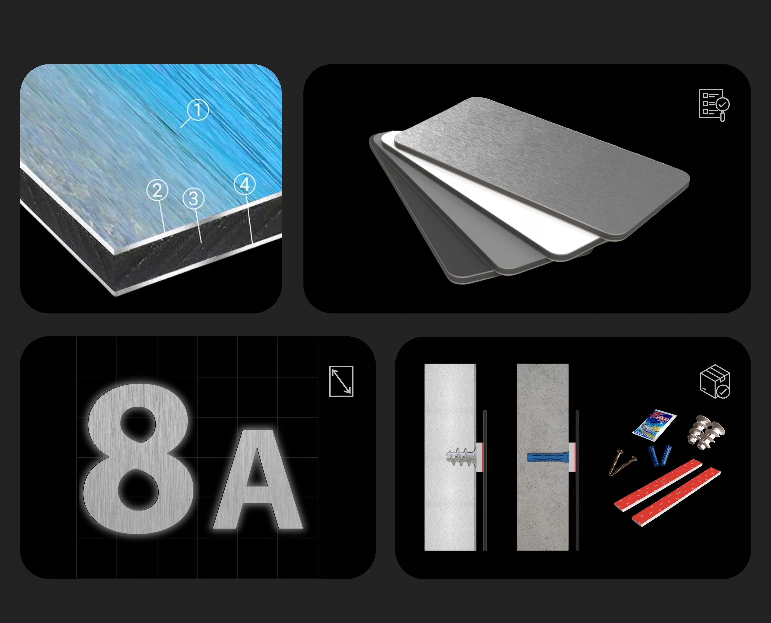 Все цифры, буквы и знаки мы предлагаем изготовленные из прочного картона ДИБОНД (алюминий с полиэтиленовым сердечником). Высота цифр 30 см, «ПЕЧАТНЫХ» букв 20 см. Каждая вывеска оснащена держателем для невидимого крепления и эффектно выступает из стены на 5 мм. В комплект входят дюбели для бетона и пенопласта.