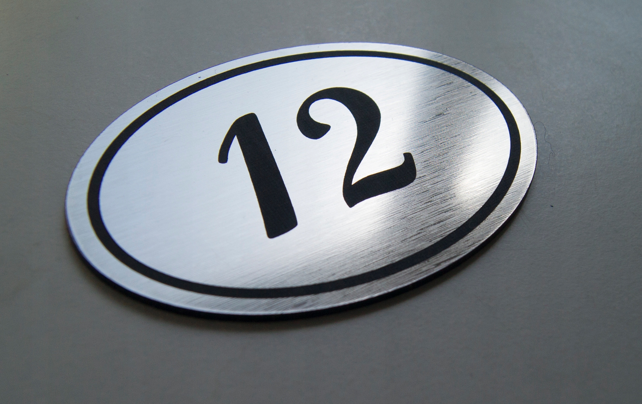 Табличка с номером квартиры, изготовленная с помощью точной лазерной технологии из гравировального ламината высочайшего качества. Пластина прекрасно отражает свет, выглядит элегантно, доступна в золотом и серебряном цвете.