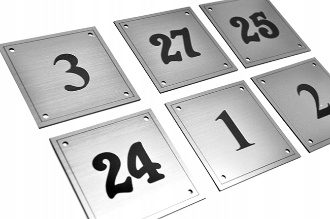 Табличка с номером изготовлена ​​из прочного гравировального ламината, который представляет собой элегантную и долговечную композицию. Толщина ламината 1,6 мм,
