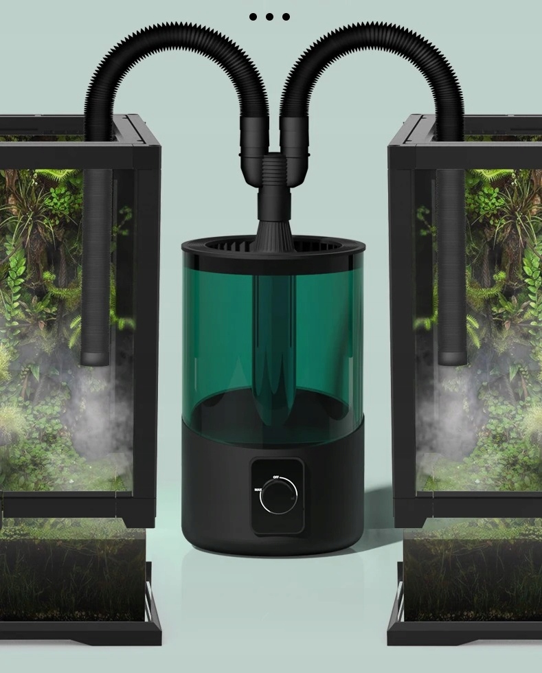 Устройство создает внутри террариума необходимую влажность, тем самым создавая подходящие условия для жизни большинства паукообразных, рептилий и амфибий. Помните, что достаточная влажность защищает кожу от чрезмерного пересыхания. Оседающий туман образует росу, которую охотно поглощают некоторые виды животных.