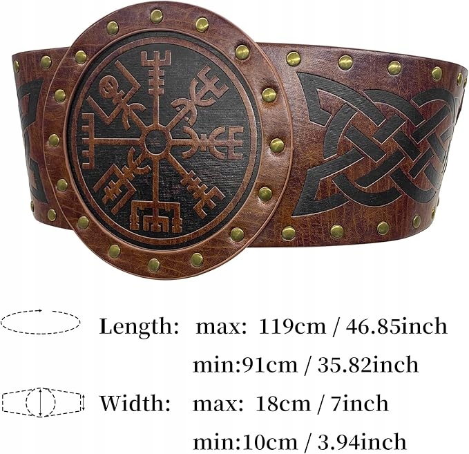 - КРУТОЙ ДИЗАЙН - Уникальный широкий ремень в стиле викингов, для настоящих воинов. Выполненная в винтажном стиле с традиционными рельефными узорами, она возвращает вас в эпоху викингов.