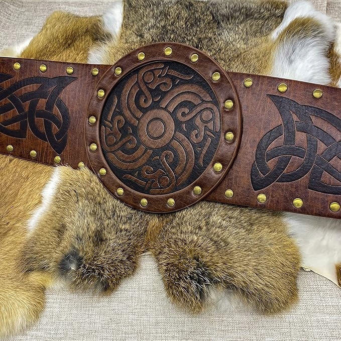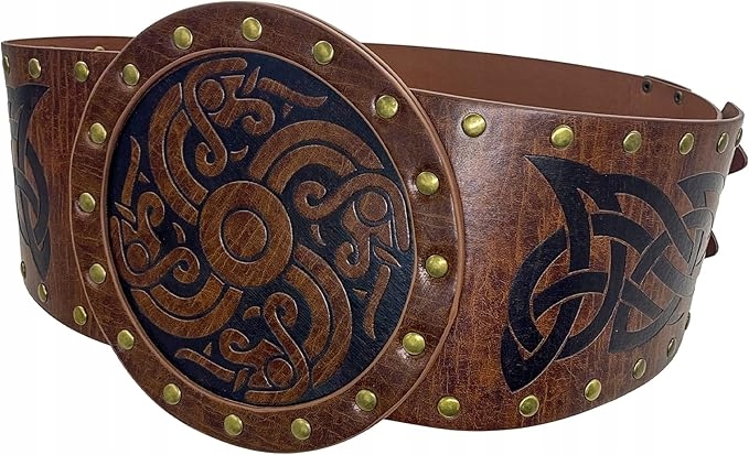 - КРУТОЙ ДИЗАЙН - Уникальный широкий ремень в стиле викингов, для настоящих воинов. Винтажный стиль с традиционными рельефными узорами возвращает вас в эпоху викингов.