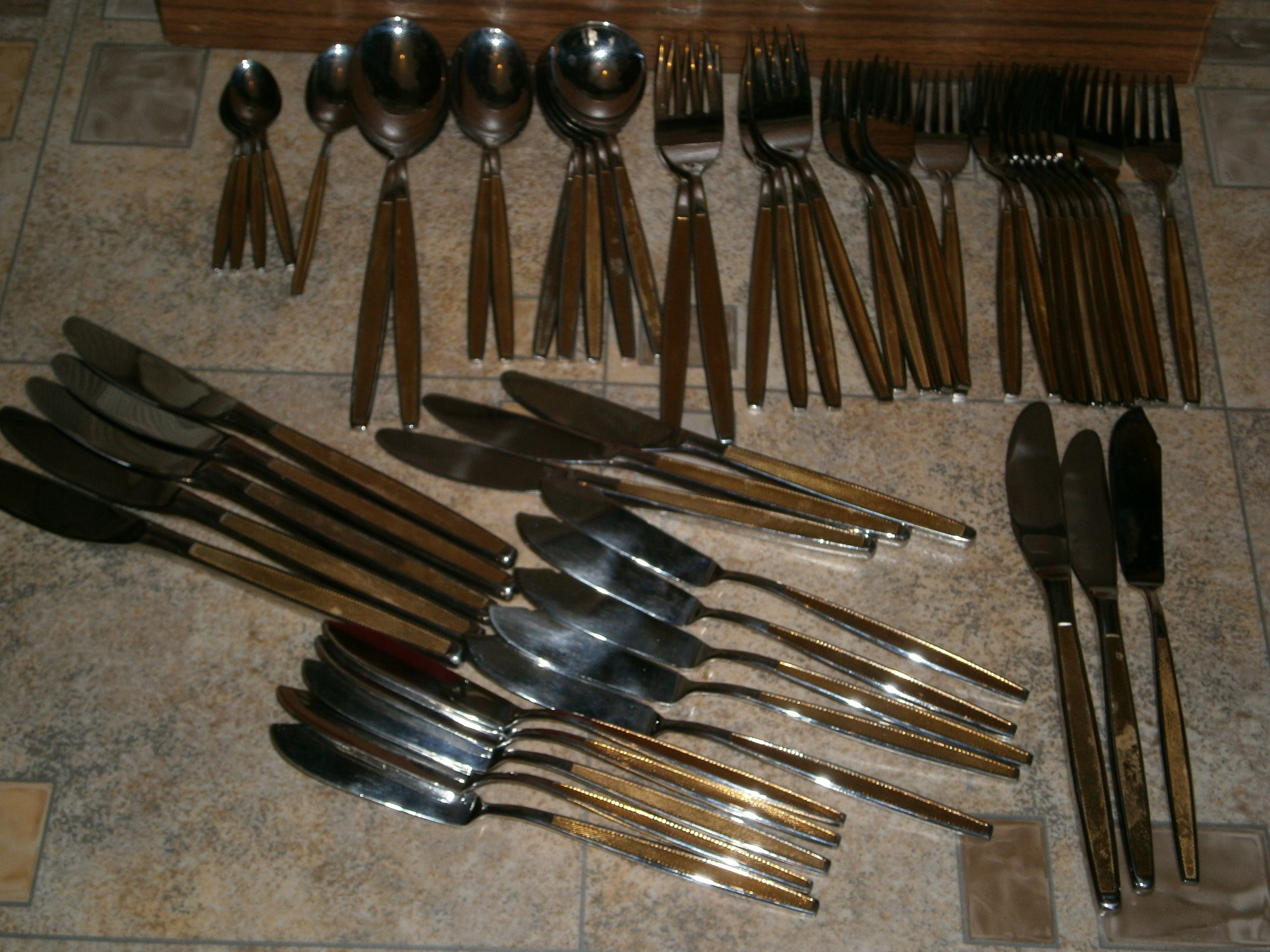 сталь не повреждена, не царапается, золотой рисунок на некоторых элементах потерт или имеет пятна, имеют нормальные следы использования с небольшими следами на поверхности.