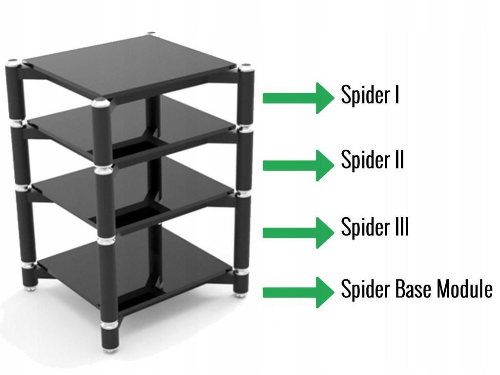 Spider — это центральная часть установки Hi-Fi, предназначенная для отображения, поддержки и изоляции электронного оборудования. В настоящее время это самая эффективная HIFI-мебель Nortsone с точки зрения гашения вибраций.