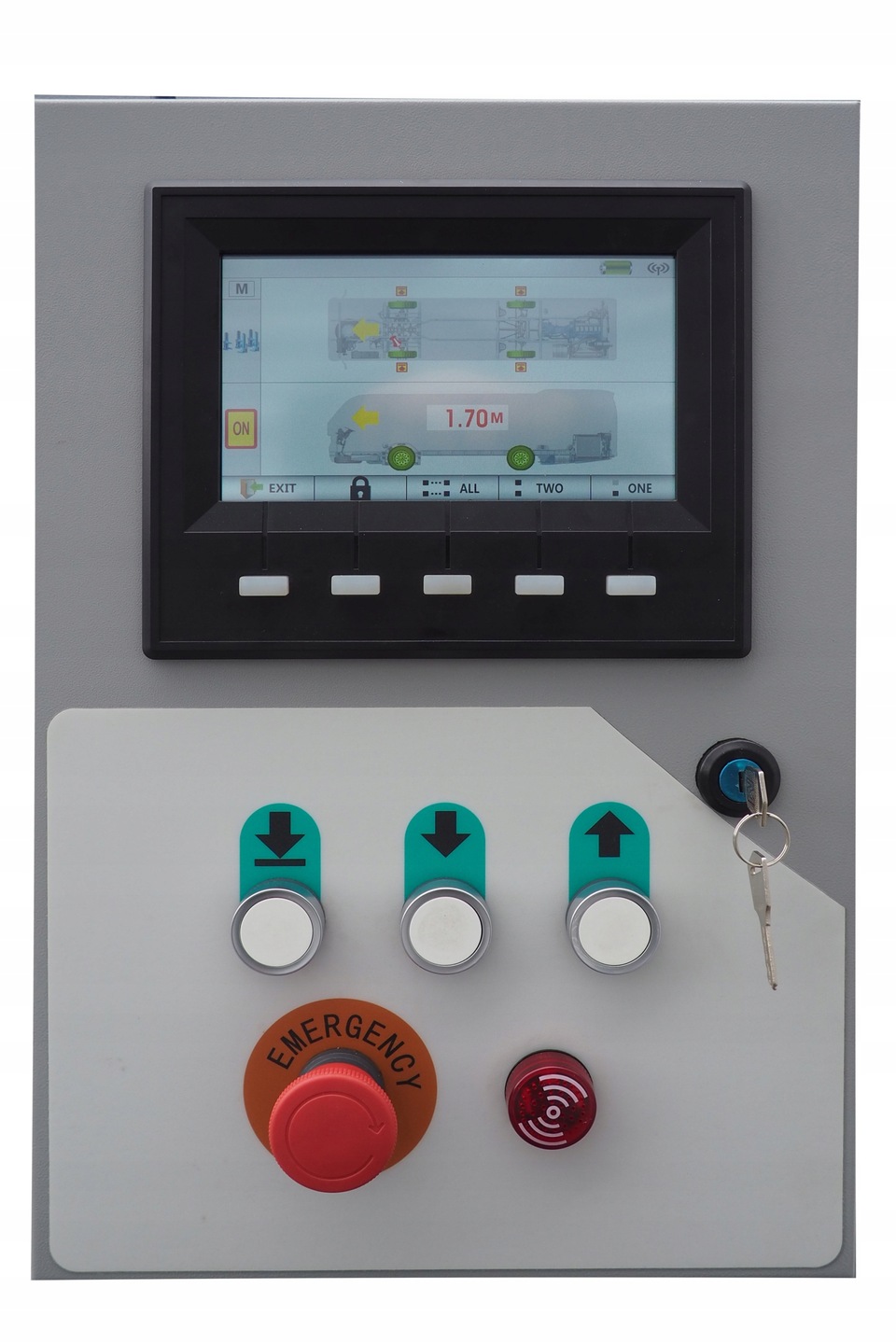 - Электрогидравлическая система управления, обеспечивающая выравнивание и синхронизацию тележек, управляемая с помощью пульта управления ЦВЕТНОЙ дисплей на каждой колонне.