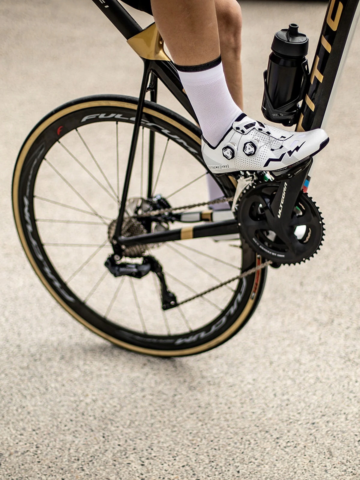 Совместим с адаптером Speedplay NW, благодаря которой мы можем сократить Расстояние между ногой и педалью. Верхняя часть обуви была сделана в Запатентованная технология Xframe 2®, благодаря которой она идеально соответствует к ноге и передает каждую ватт питания на педали без какой -либо точки давление в ногу. Использование двойной ручки SLW2 позволяет отдельно и Индивидуальная регулировка завоевания и пальцев еще лучше адаптация