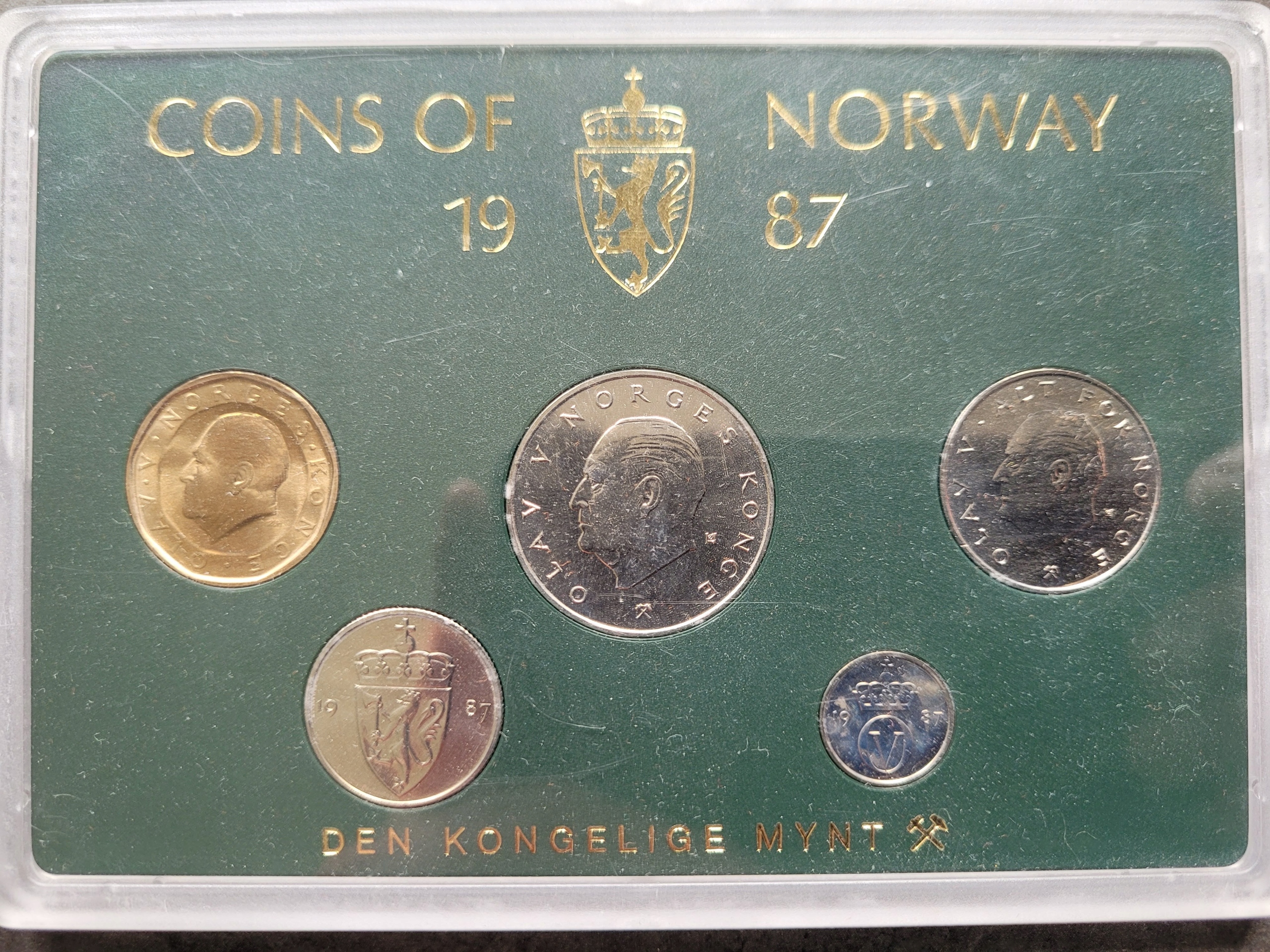 НОРВЕГІЙСЬКИЙ МОНЕТНИЙ НАБІР 5 ПЛАСТИКОВИХ МОНЕТ 1987 РІКОСТІ