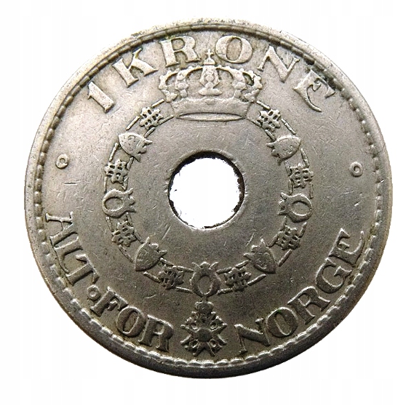 НОРВЕГІЯ 1 КРОНА 1949 - З ДІРКОЮ