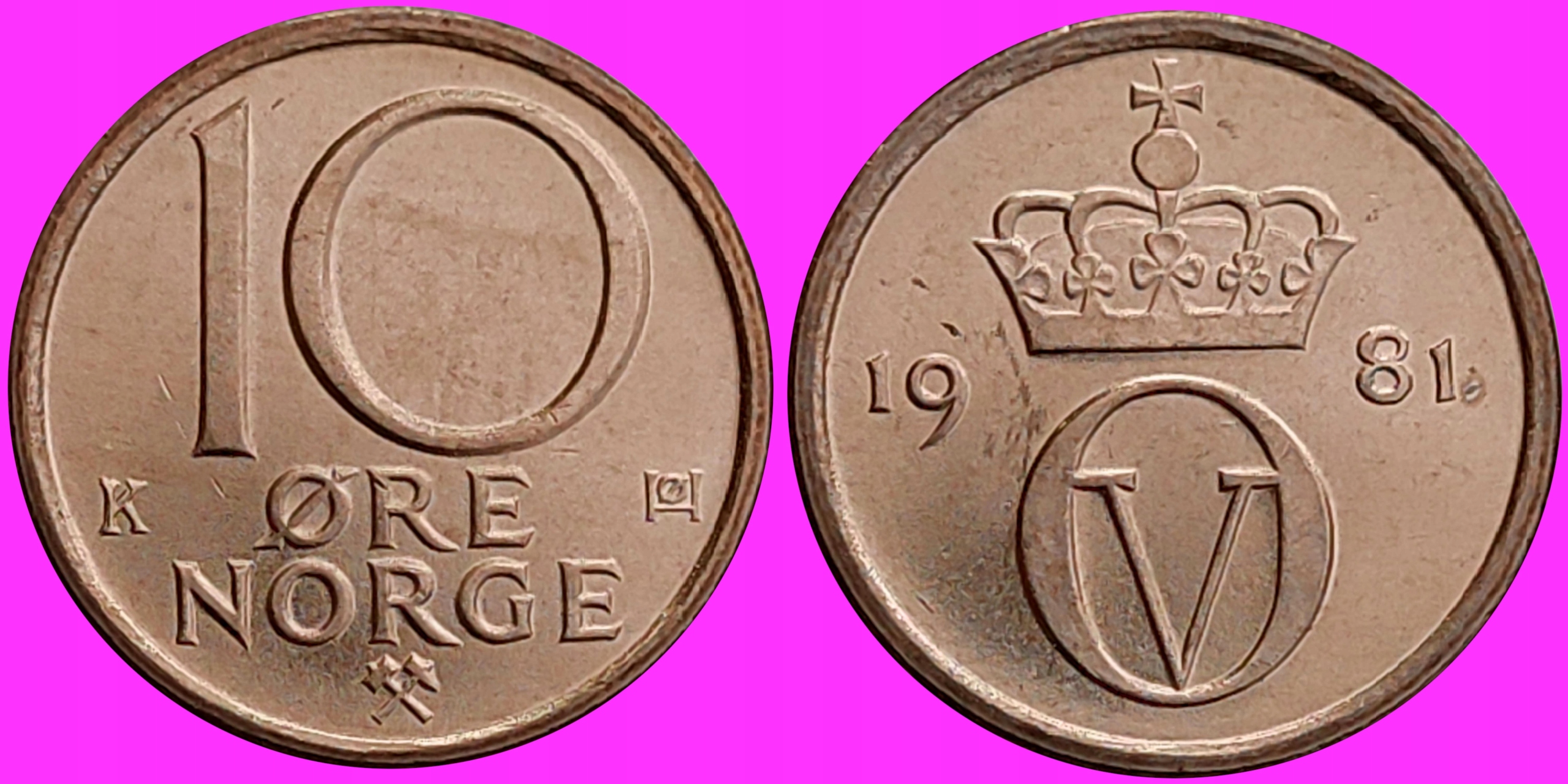 Норвегия 10 эре 1981 г. К-МЯТА С РУЛЕНОМ
