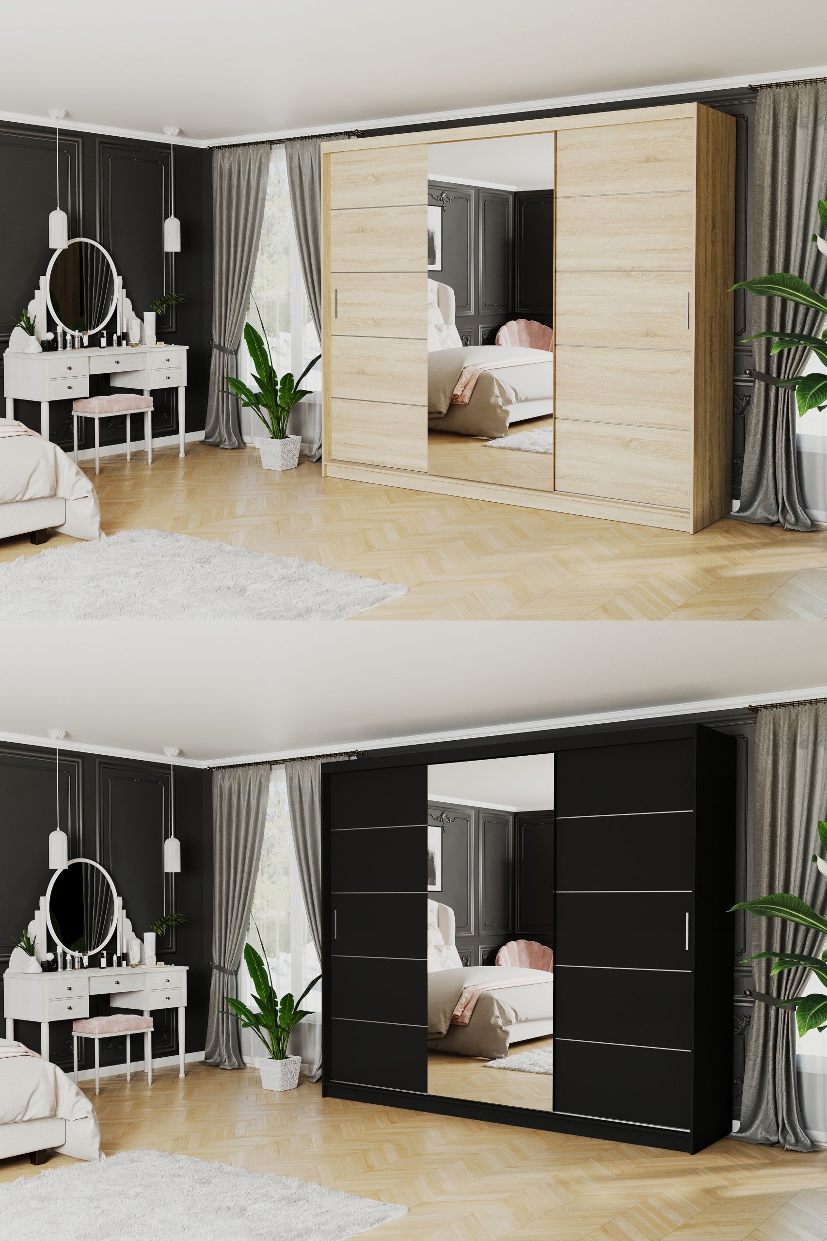 Norvio и 250 см раздвижной гардероб с зеркалом