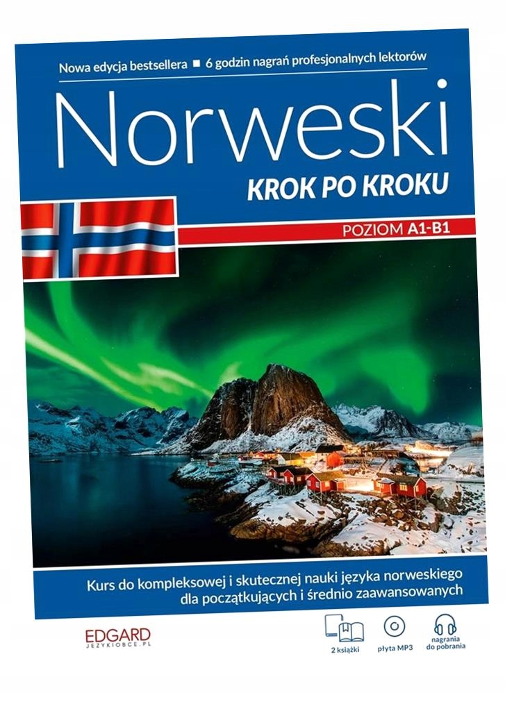 (всего 252 страницы) содержат 30 тематических уроков, наборы лексики, интересные диалоги, интересные упражнения по закреплению, дополнительные разделы для амбициозных людей, полные записи с переводами на польский язык, интересные факты, напр. кулинарные обычаи норвежцев, первых людей Севера. , Королевская семья . Грамматическая часть в доступной форме объясняет наиболее важные вопросы, в том числе: грамматические времена, неправильные глаголы, правила произношения и ударения.