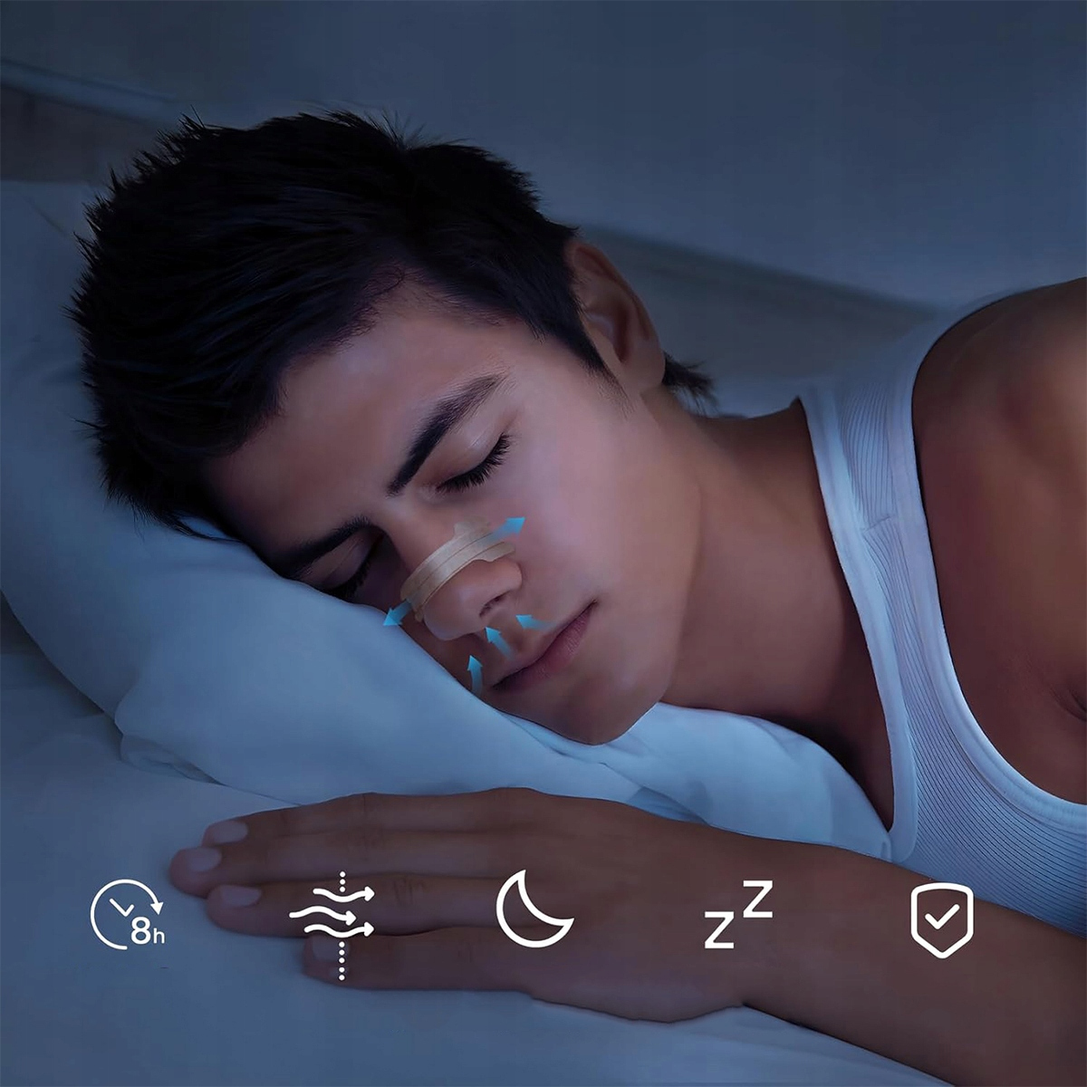➡4. Медленно удалите ремень на носу (желательно при мытье лица или принимайте душ). Сначала ослабьте концы, а затем осторожно поднимите обе стороны. Не носите более 12 часов в день.