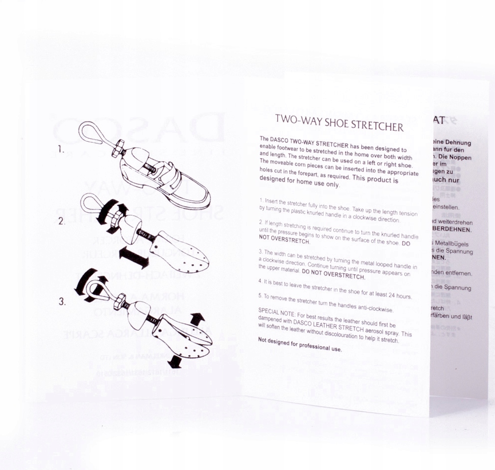 Двухсторонние носилки DASCO созданы для того, чтобы вы могли растягивать обувь как по ширине, так и по длине в домашних условиях. Подставка для обуви может использоваться как в левом, так и в правом ботинке.