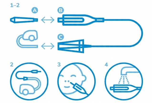 Аспиратор подключается к домашнему пылесосу мощностью 800-1500Вт. Уменьшенная и равномерная сила всасывания делает его намного более эффективным по сравнению с оральными аспираторами и традиционными грушами.