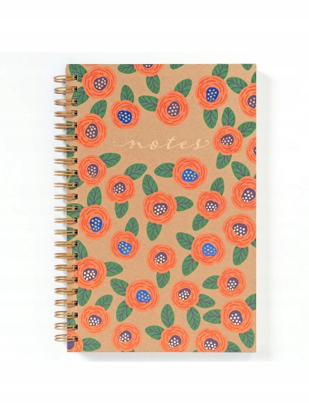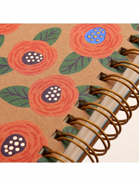 Декоративный блокнот с графикой и мелкими цветочками. В спиральном блокноте 192 страницы кремовой бумаги плотностью 70 г. Все это покрыто толстой обложкой из переработанного натурального картона плотностью 650 г.
