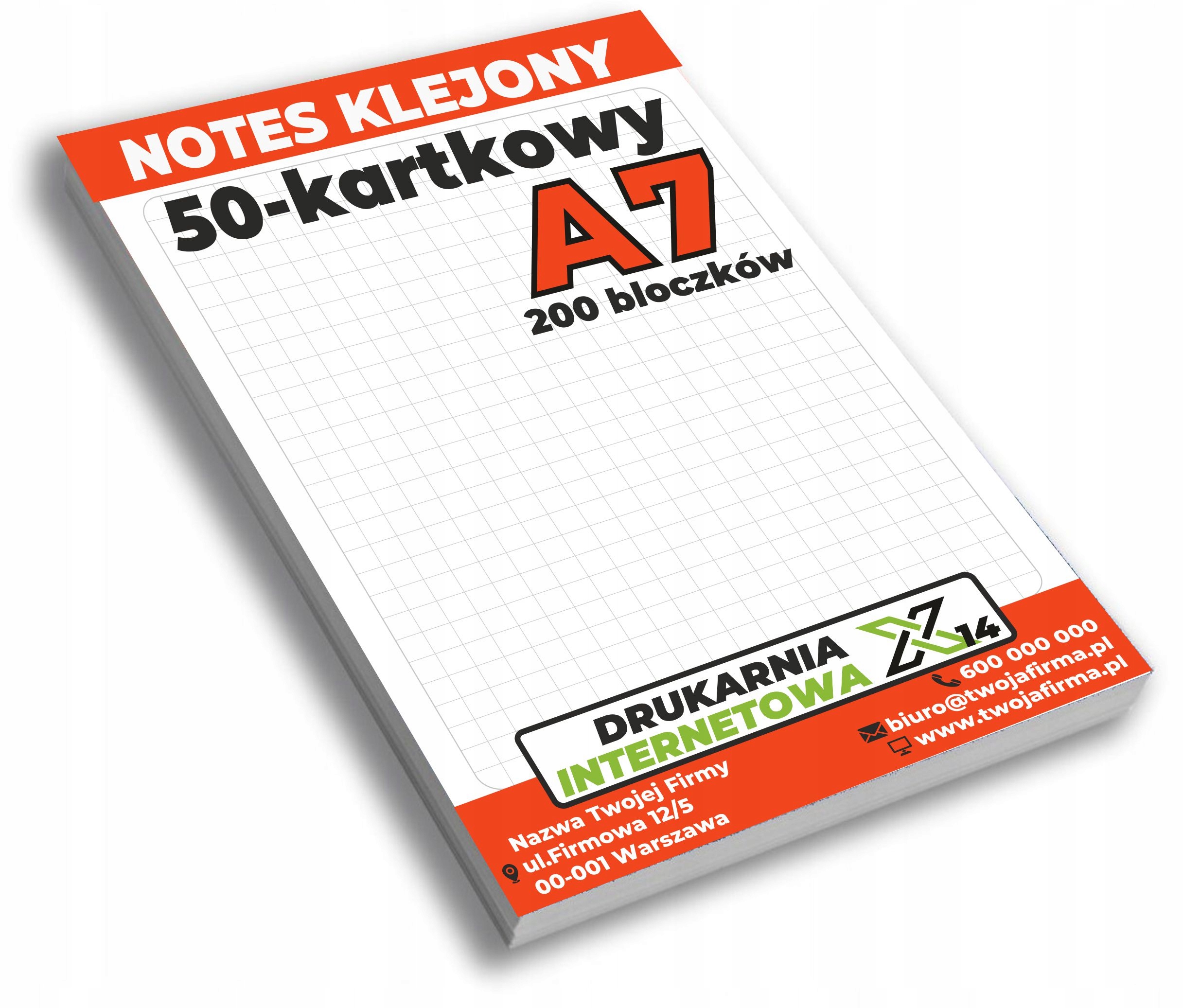 NOTES reklamowy A7 BLOCZKI 50-kartkowe - 200 sztuk