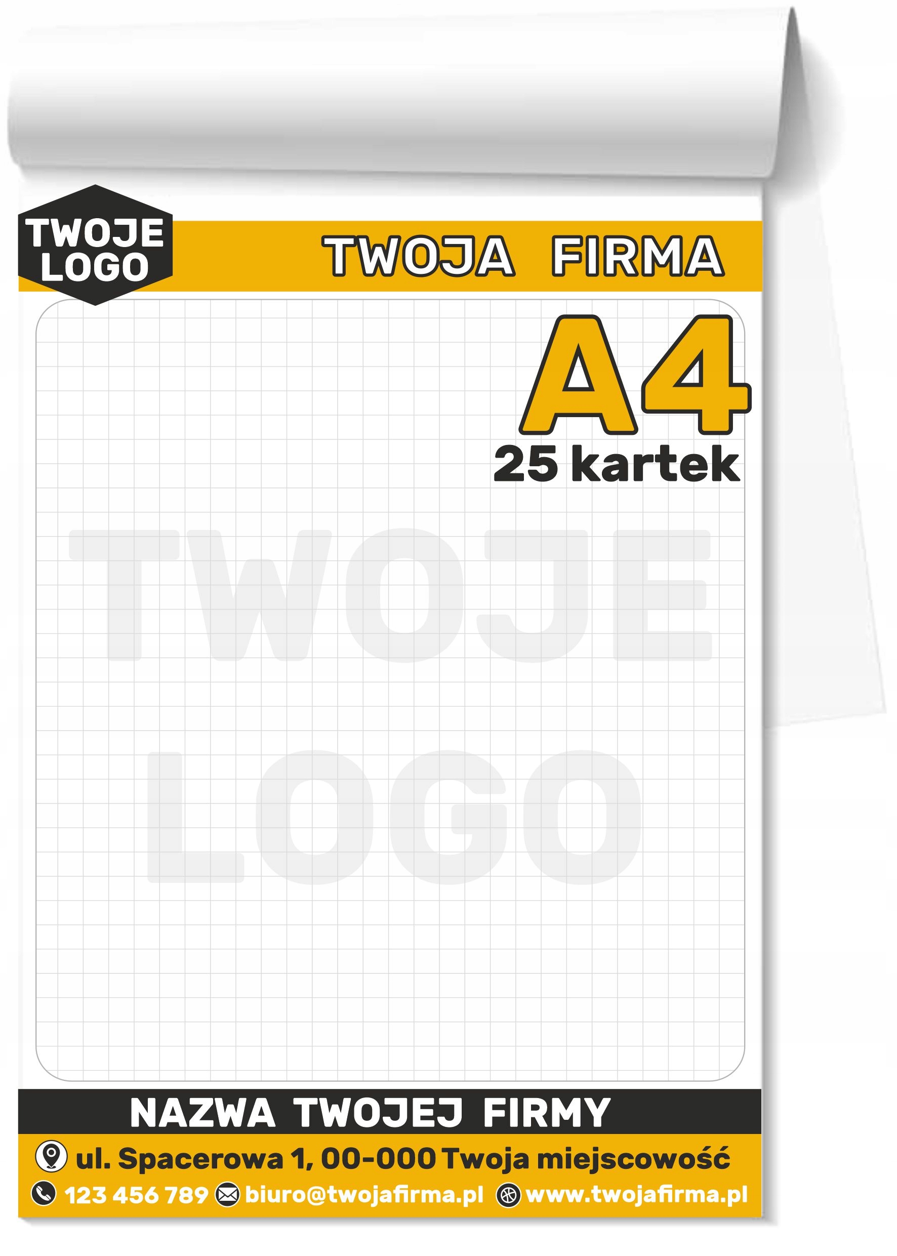 NOTESY klejone z Własnym NADRUKIEM A4 BLOCZKI reklamowe LOGO 50 sztuk