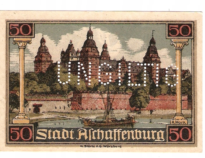 Notgeld Aschaffenburg 50 Pfennig 1921 Перфорирован!