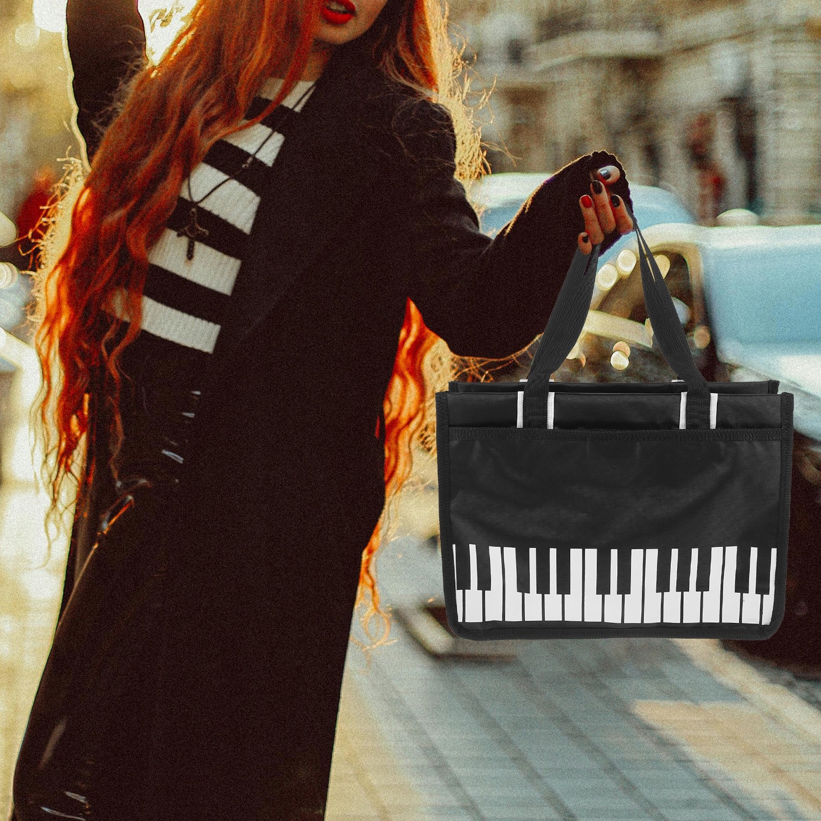 ✅Узор на фортепианной клавиатуре на сумке не только добавляет элегантности, но и обеспечивает дополнительную защиту, предотвращая сгибание нот.