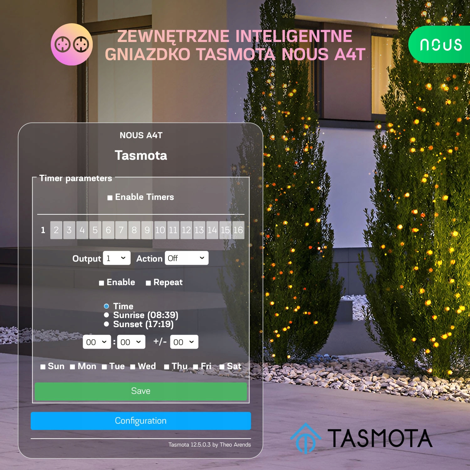 Вы ищете интеллектуальное решение для управления электрическими устройствами в вашем доме или саду? Если да, то у нас есть для вас что-то идеальное — внешняя интеллектуальная двойная розетка NOUS A4T с установленным программным обеспечением Tasmota!
