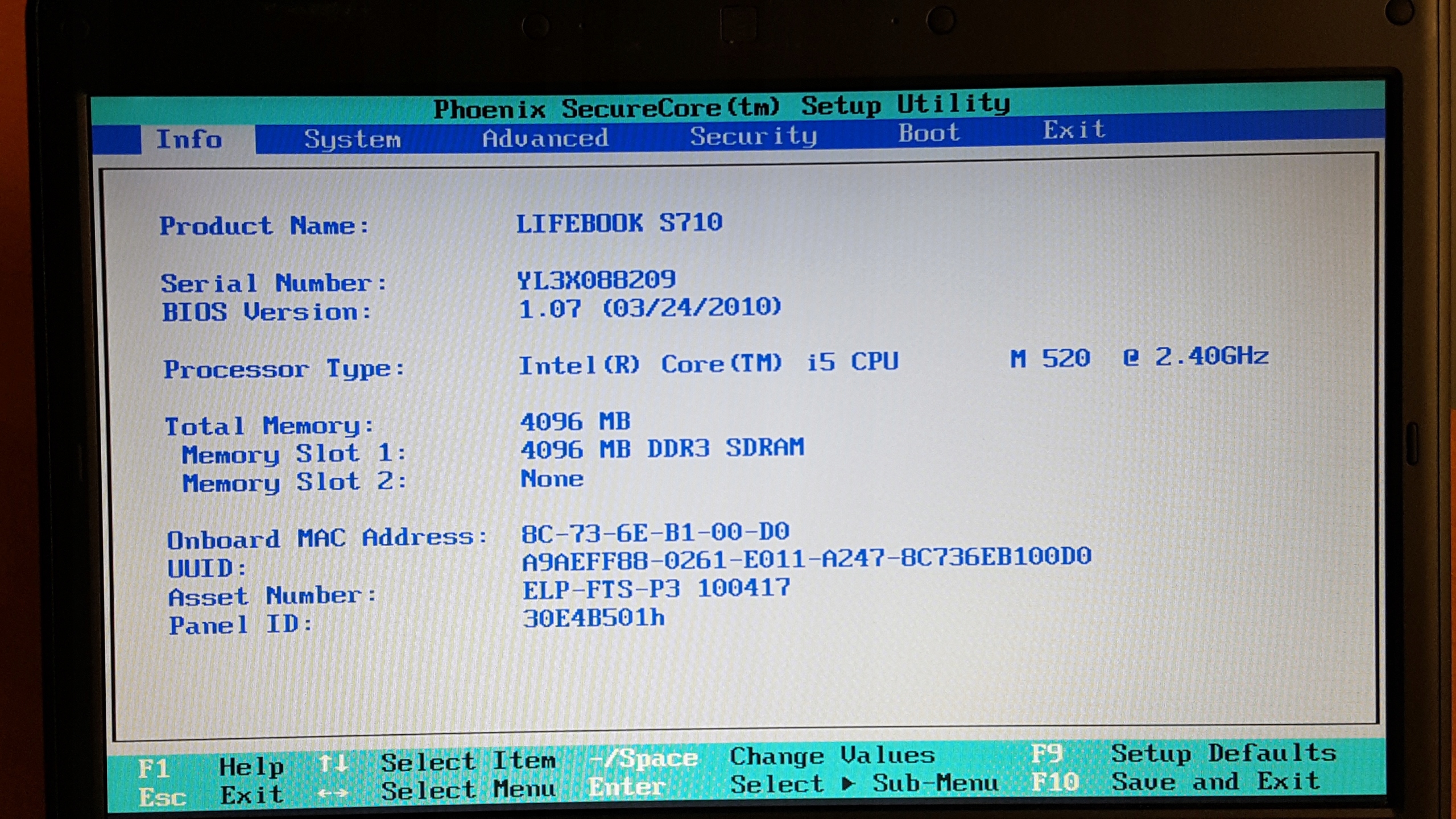 НОУТБУК FUJITSU LIFEBOOK S710 запускає BIOS
