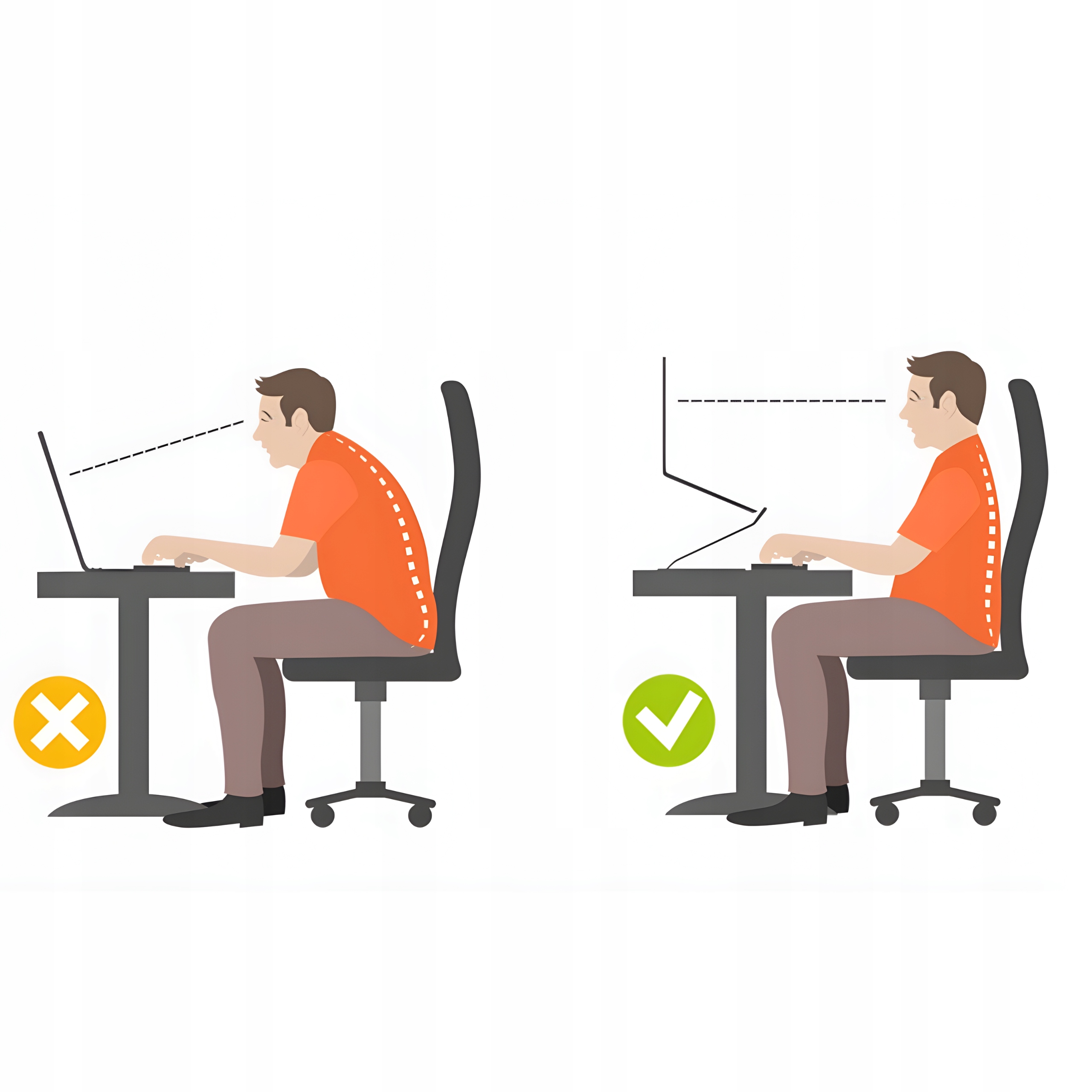 Береги себя! Подставка для ноутбука может оказать существенное влияние на позицию во время работы. Благодаря этому вы можете установить устройство на удобной высоте, что позволяет сохранить правильную осанку и избежать чрезмерного натяжения в позвоночнике.