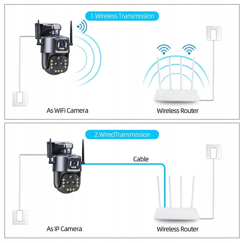 Камера оснащена камерой с высокой скоростью 5DBI антенны, поддерживающей подключения кабеля Wi -Fi 2,4 ГГц и RJ -45, обеспечивая стабильный сигнал, чтобы вы могли контролировать свой дом в любом месте.