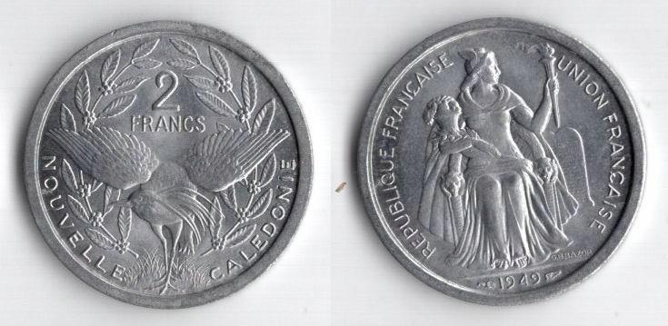 НОВАЯ КАЛЕДОНИЯ 2 ФРАНКА 1949 ГОДА