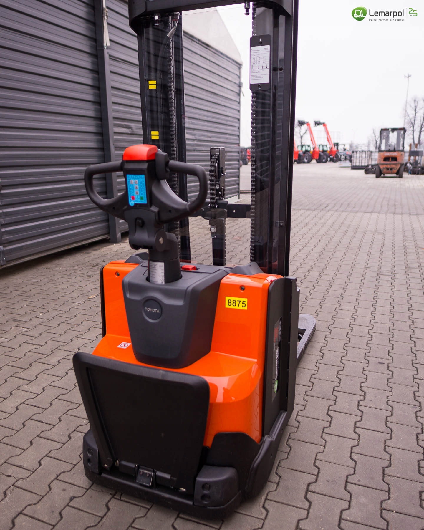 Toyota SWE120 - это тележка подъема электрического укладчика, идеально подходящее для применений света и среднего хранения. С помощью подъемной емкости до 1200 кг она идеально подходит для хранения и транспортировки зарядов за короткие расстояния.
