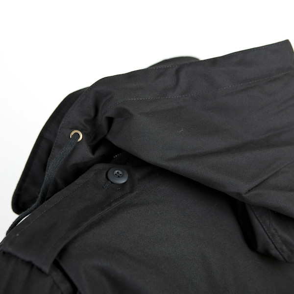 Куртка также имеет два кармана на уровне груди и два на уровне бедер на кнопках. Непременным элементом М-65 являются погоны на плечах, застегивающиеся на кнопки.