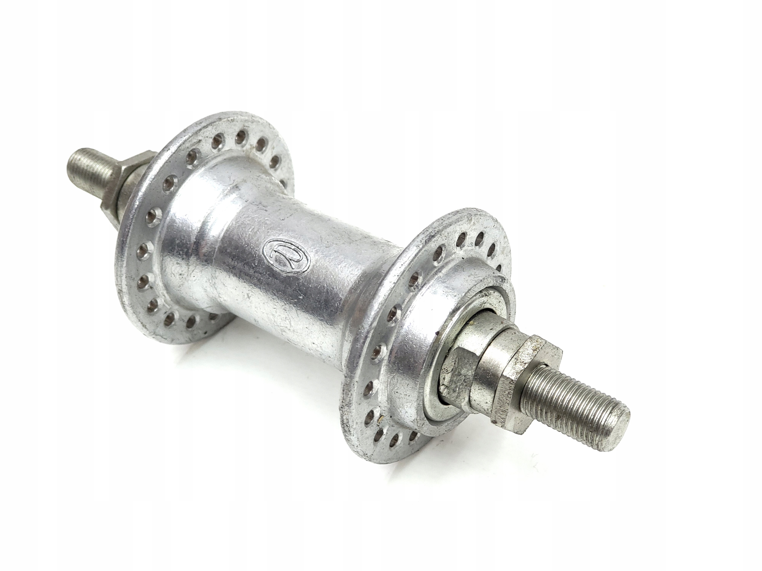 мы предлагаем новый передний хаб, произведенный в начале 90 -х годов в Ромет Заклади, посвященный передним колесам в 36 спицах (2x18). Диаметр оси: 9,36 мм Ширина оси: около 12,5 см.