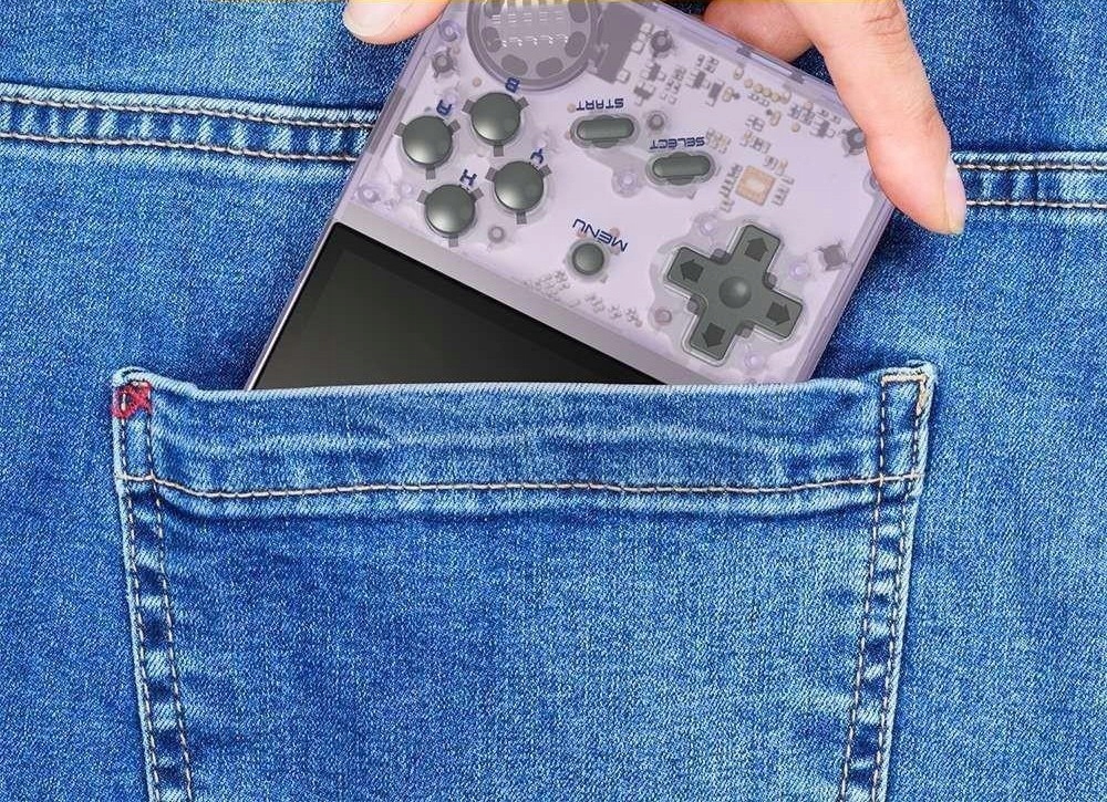 Классический стиль D-PAD : портативный портативный компьютер для игр RG35XX в стиле ретро оснащен классическими D-PAD и стандартными игровыми кнопками. На задней части портативного устройства есть четыре дополнительные кнопки для использования в поддерживаемых эмуляторах