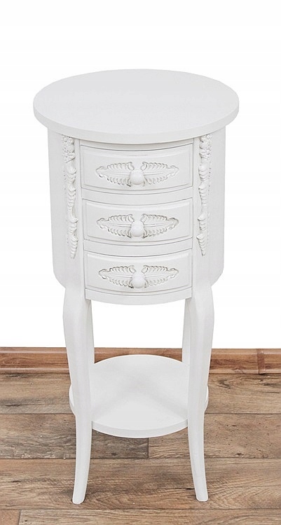 Очаровательный предмет мебели с тремя ящиками и красивой резьбой.