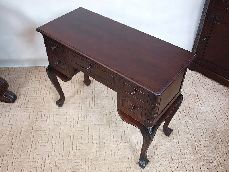 Приглашаю Вас купить стильный письменный стол. Он изготовлен из экзотической древесины – производной красного дерева. Он очень практичен и функционален – имеет пять ящиков. Смотрится красиво.