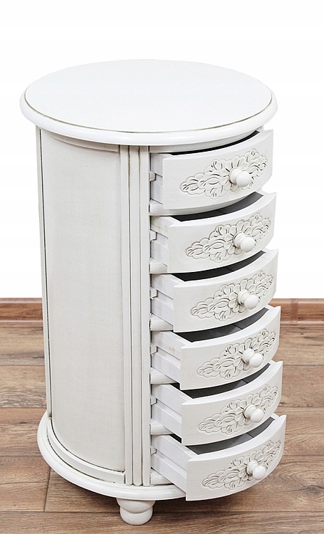 Очаровательный деревянный предмет мебели с шестью ящиками и красивой резьбой.