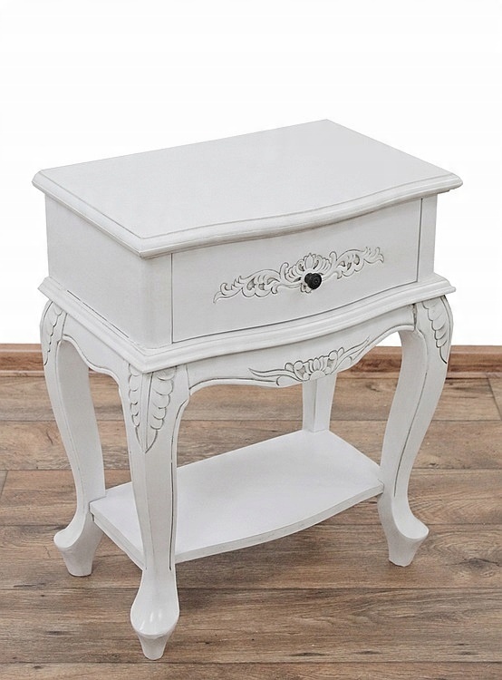 Очаровательный предмет мебели с ящиком, гнутыми ножками и красивой резьбой.