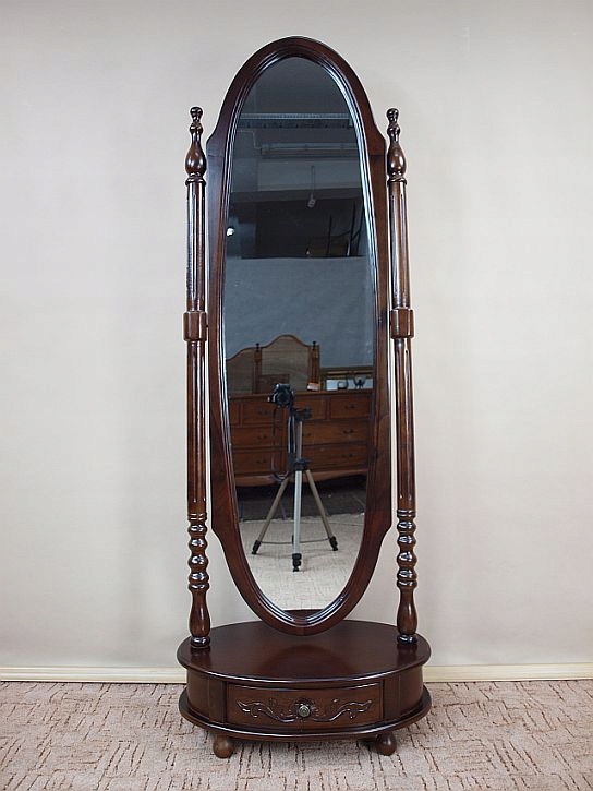 Приглашаю Вас приобрести стильное стоячее зеркало цвета темного ореха. Вещь выглядит великолепно и очень практична. Есть выдвижной ящик.