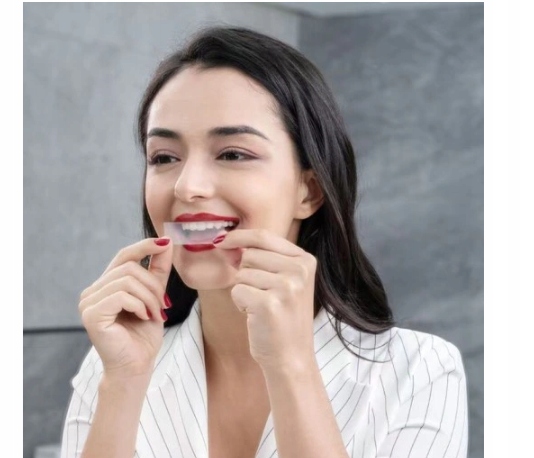 ✅ строп, на котором есть гель. Поместите зубной бот даже под уровнем десен. Аккуратно положите ремень на зубы и слегка приклеивайте его пальцами. То же самое следует сделать со вторым поясом.