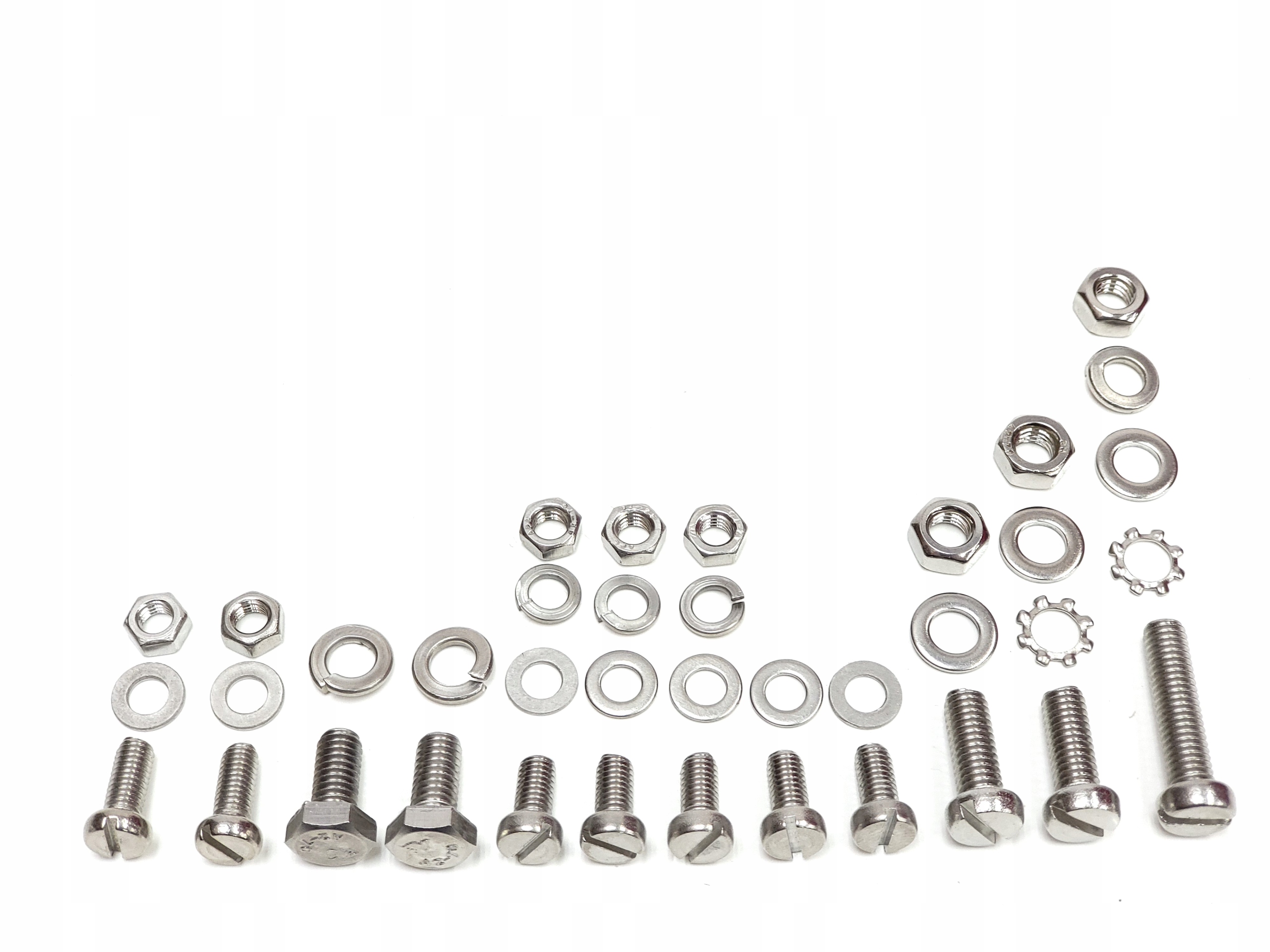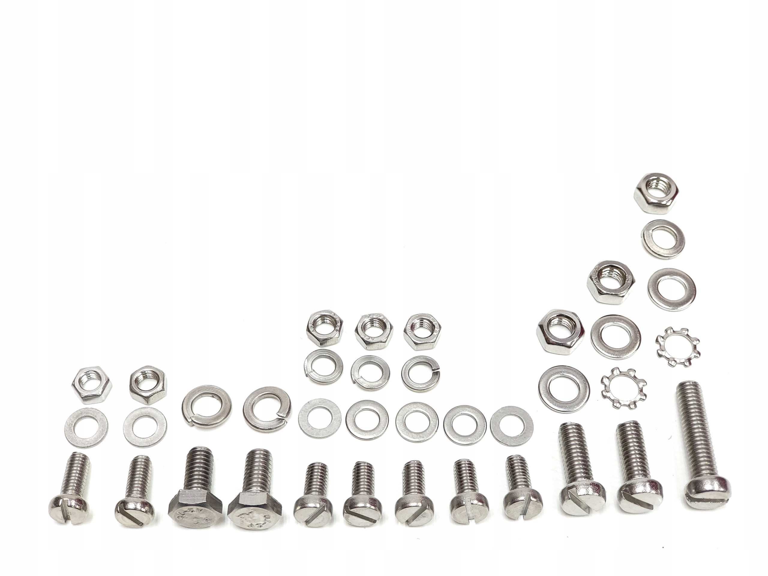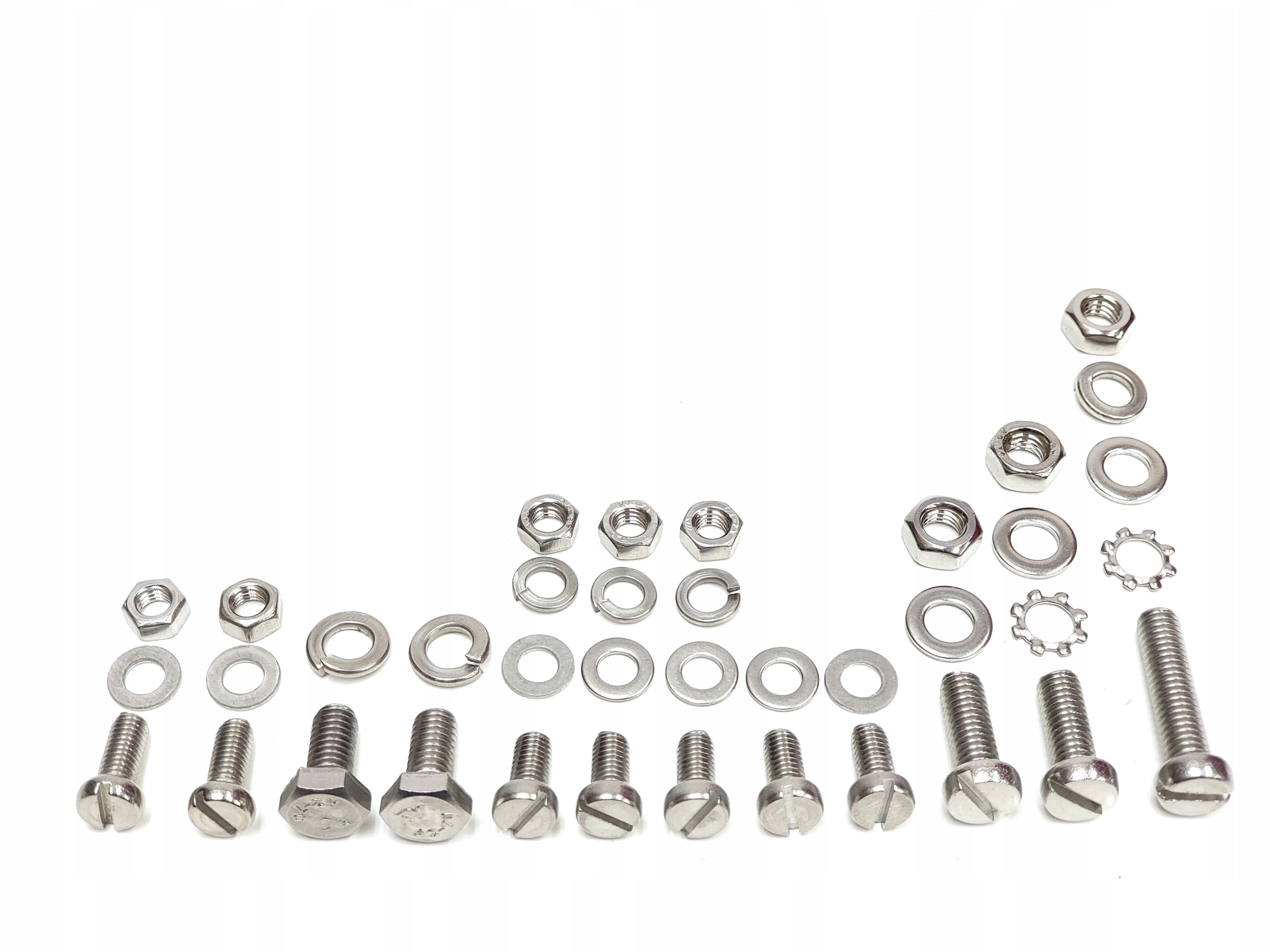 Мы предлагаем новые винты из нержавеющей стали для плоской отвертки, гайков, прокладки - набор, соответствующий велосипедам ZZR Romet Wigry Jubilat Gil Agat, другие модели отличаются от других моделей P> Этот набор соответствует количеству элементов в качестве монтированных велосипедов Фабрика. Плоские шайбы + прокладки + пружинные подушки + гайки