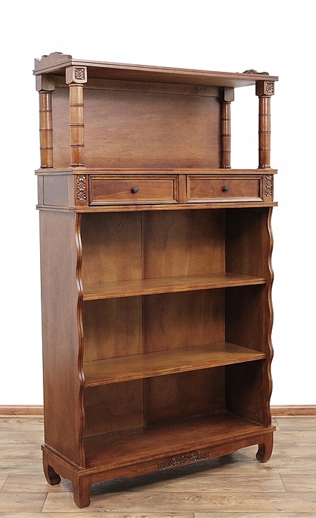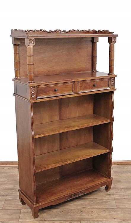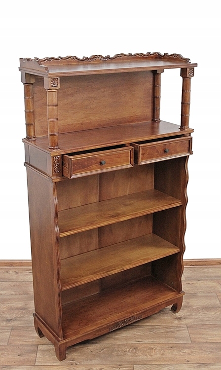 Очаровательный предмет мебели с тремя полками и двумя ящиками.