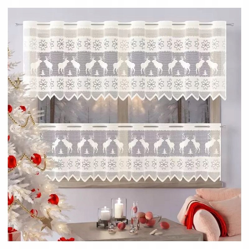 Короткая рождественская штора изготовлена из эстетичного жаккардового материала, что обеспечивает ее долговечность и элегантный внешний вид на каждом окне.